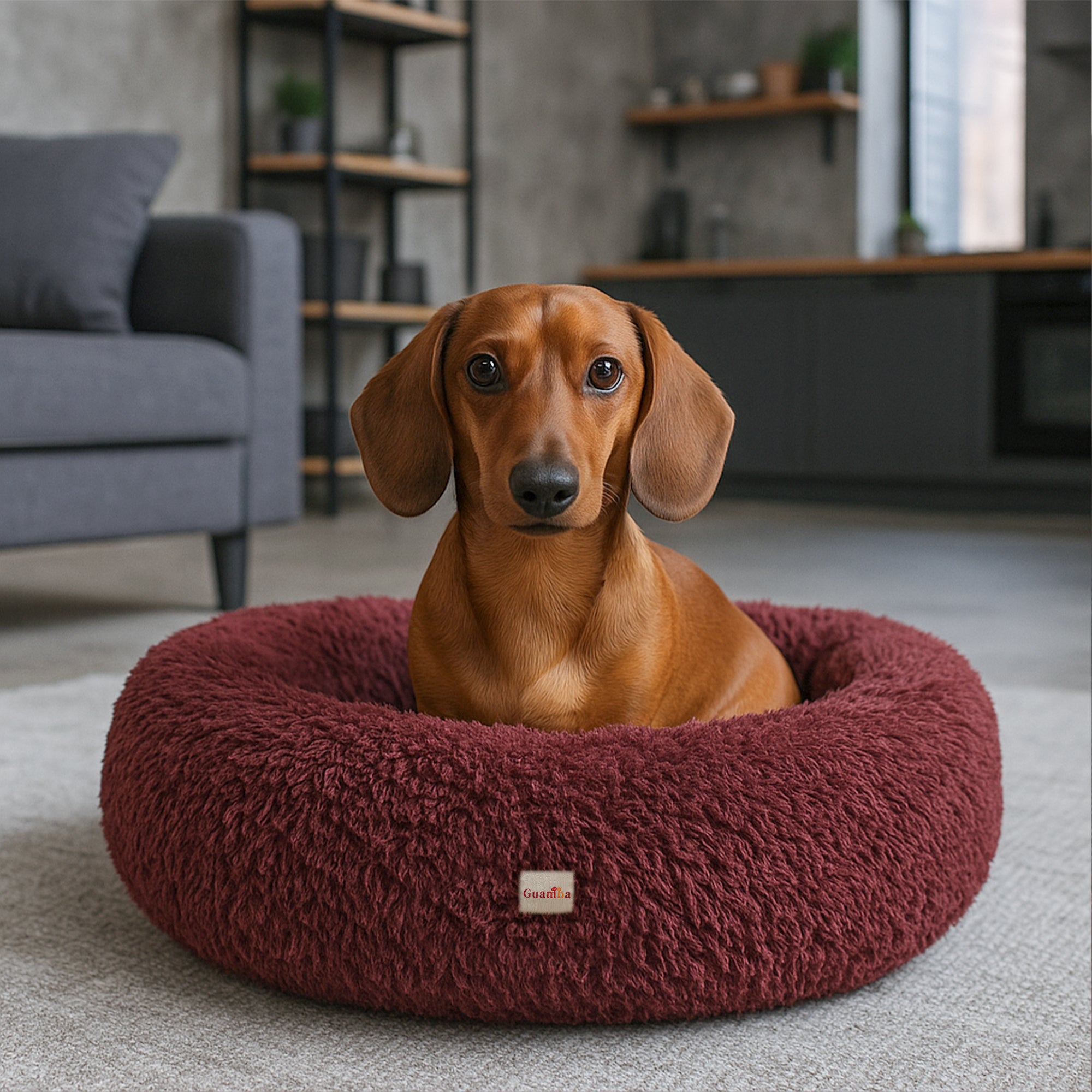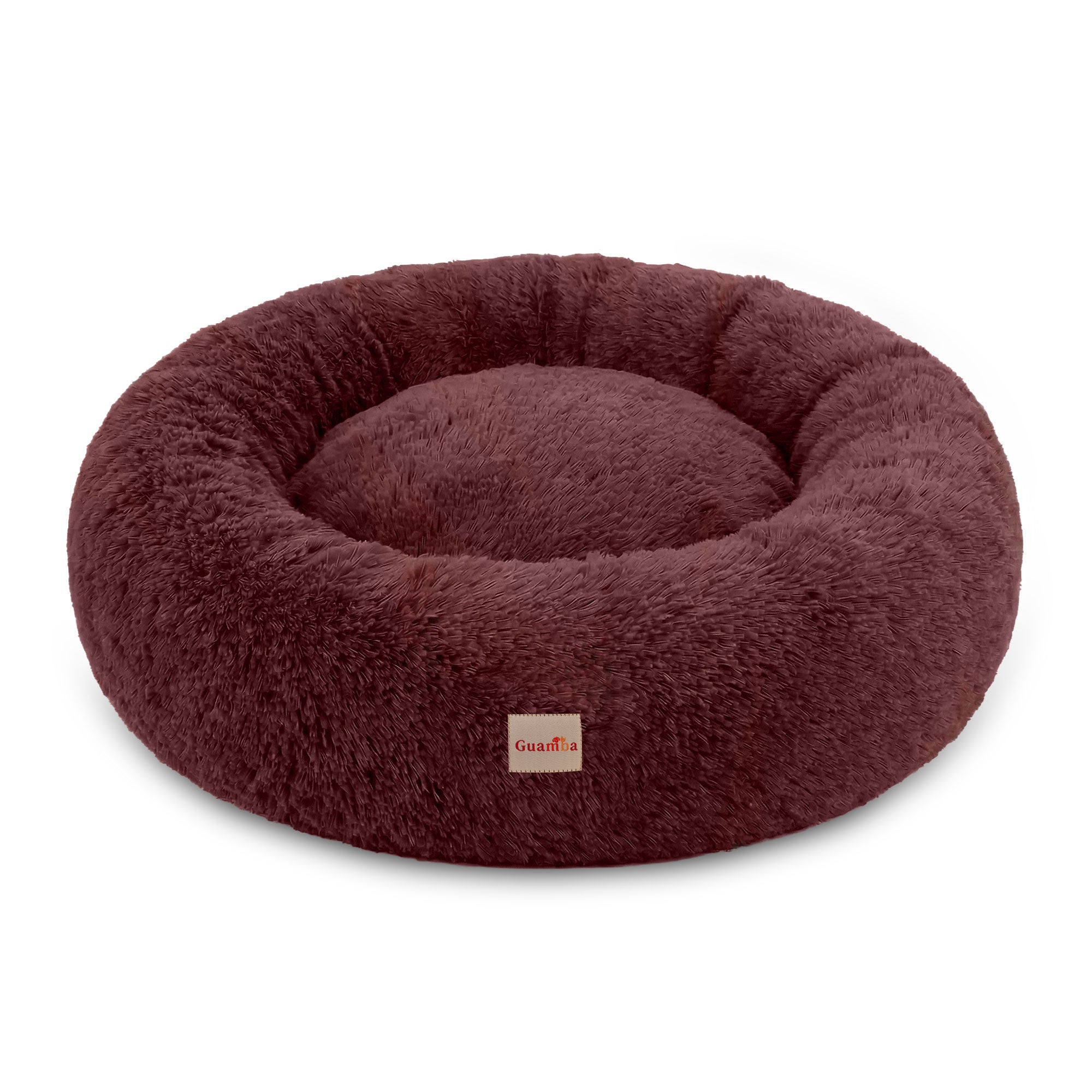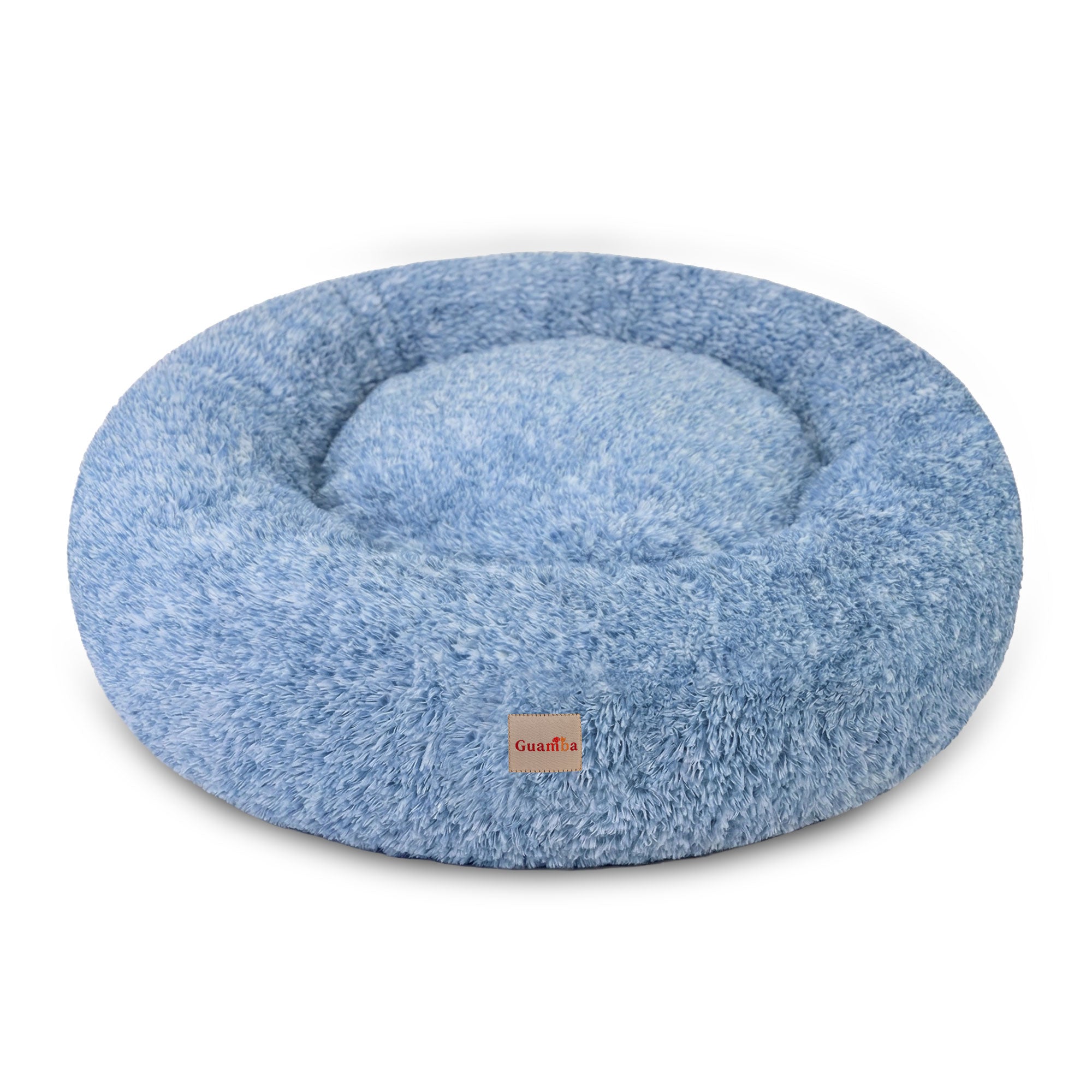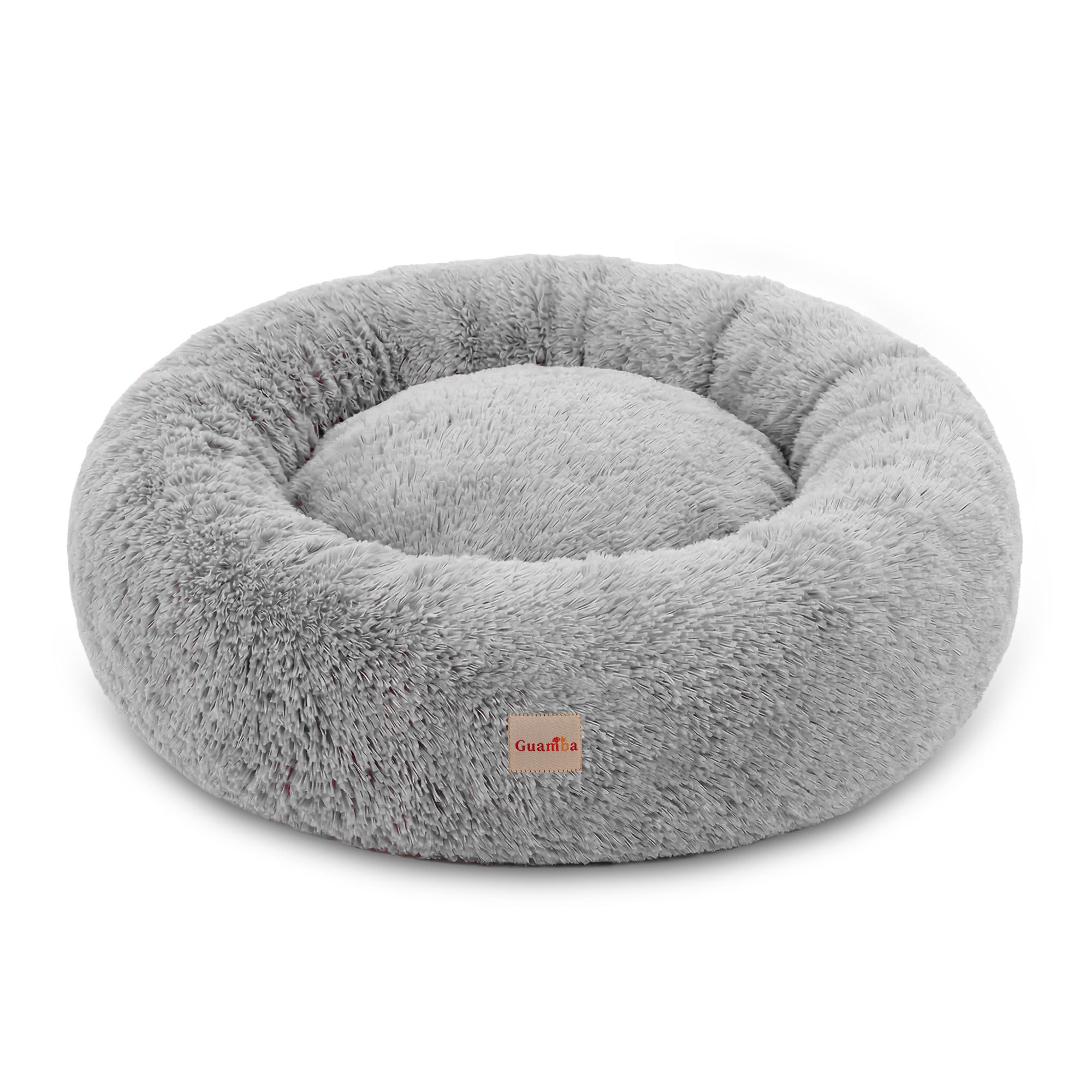 La forma redonda y el borde elevado de la cama Donut Guamba para mascotas crean una sensación de seguridad y brindan soporte para la cabeza y el cuello, ayudando a tu mascota a relajarse y descansar mejor.